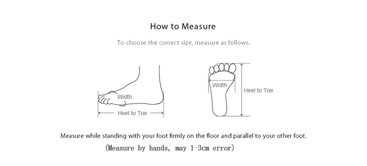 About the size: Due to the size standard is different for different region, please measure your foot length and choose right shoes size according to the size chart below.